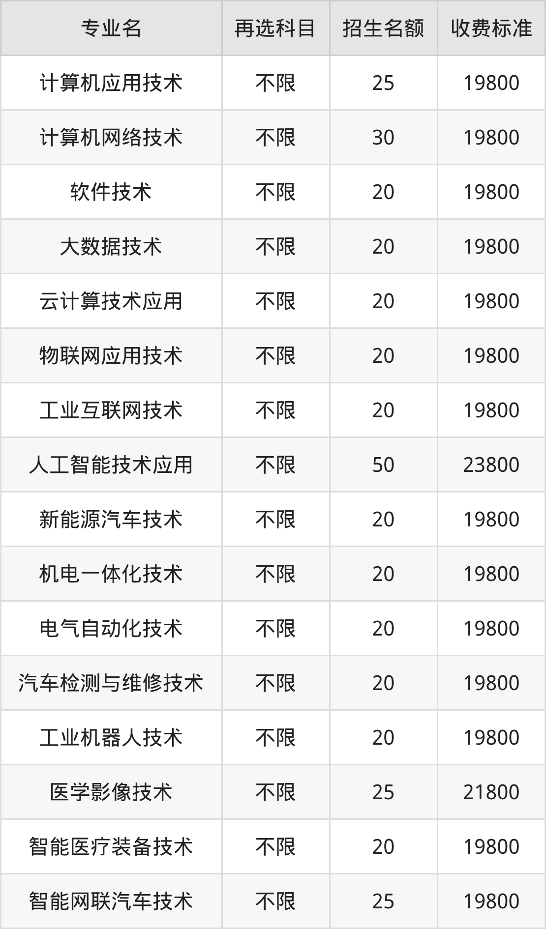 | 专科高职批 | 物理 | 软件技术 | 30 |
