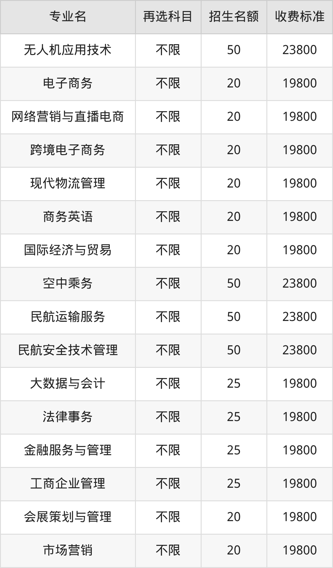 | 专科高职批 | 历史 | 跨境电子商务 | 20 |