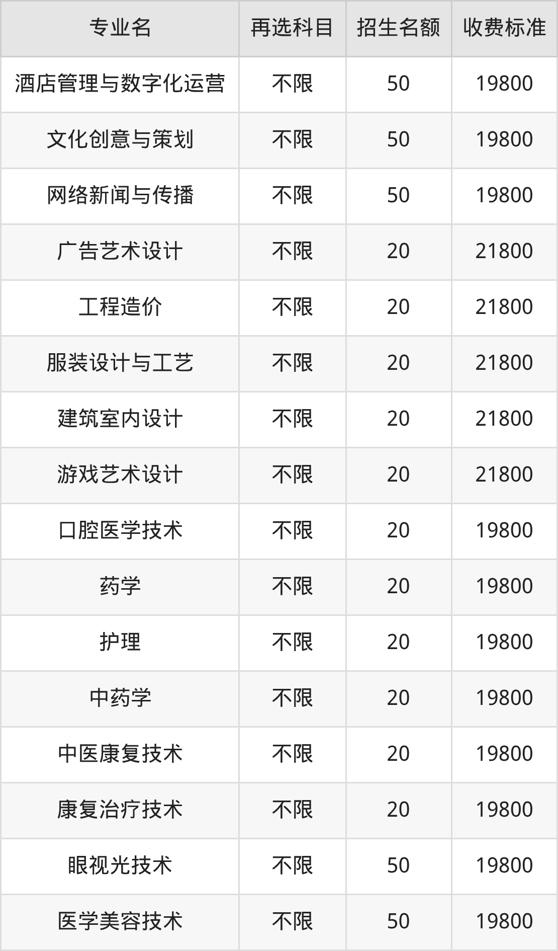 | 专科高职批 | 历史 | 酒店管理与数字化运营 | 50 |