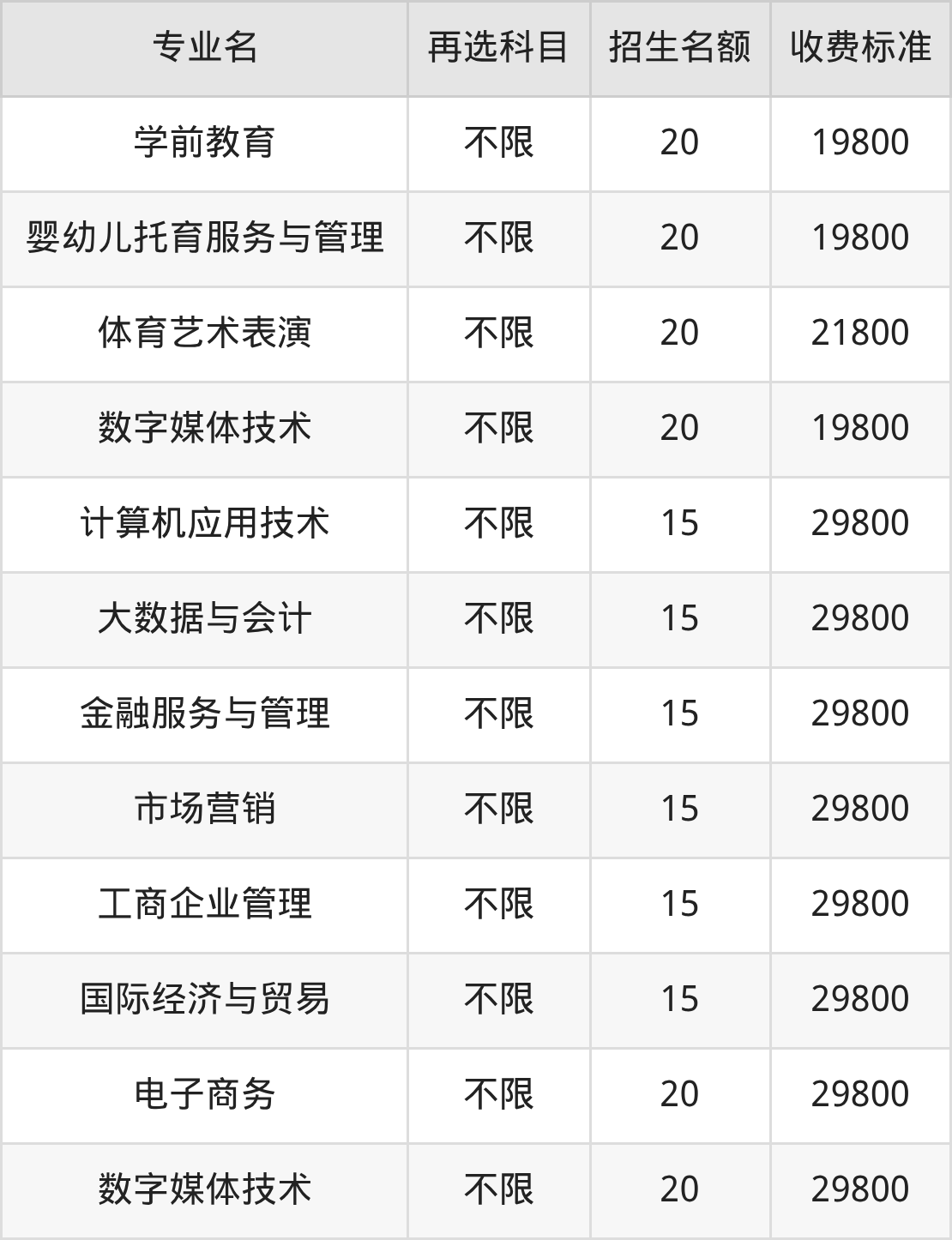 | 专科高职批 | 历史 | 软件技术 | 20 |