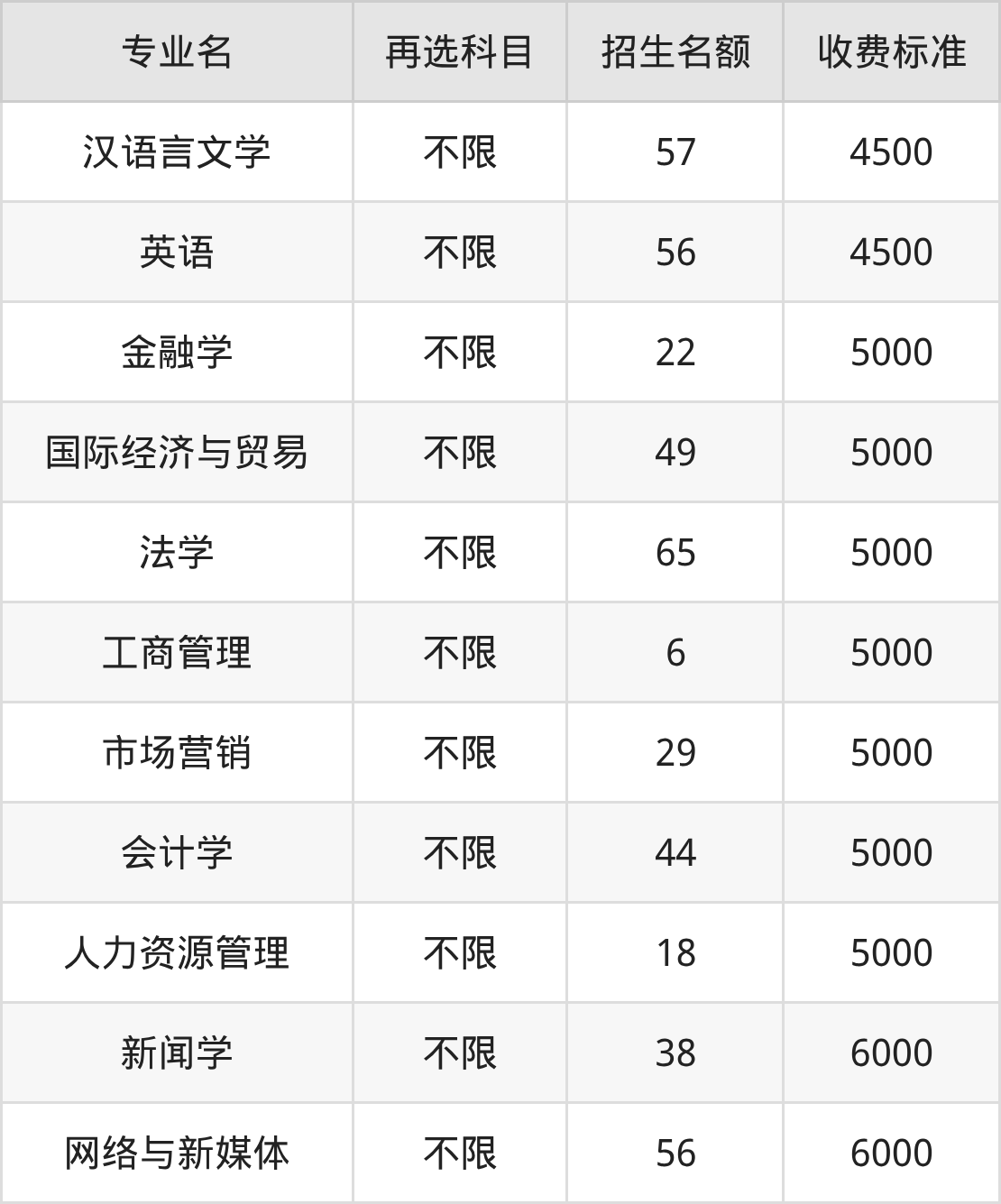 | 本科批 | 历史 | 汉语言文学 | 57 |