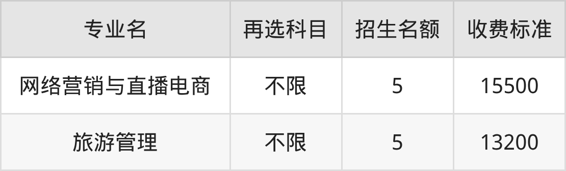 | 高职专科批 | 历史 | 旅游管理 | 5 |
