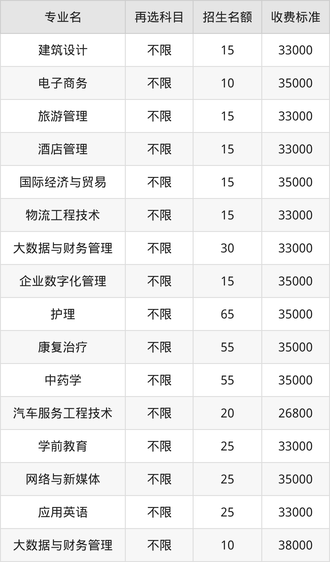 | 批次 | 首选 科目 | 专业名 | 招生 名额 |