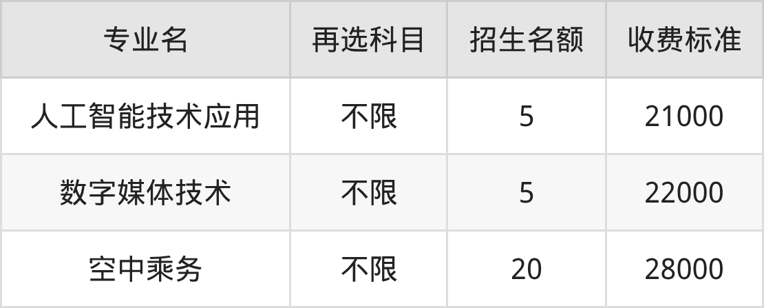 | 专科高职批 | 历史 | 人工智能技术应用 | 5 |