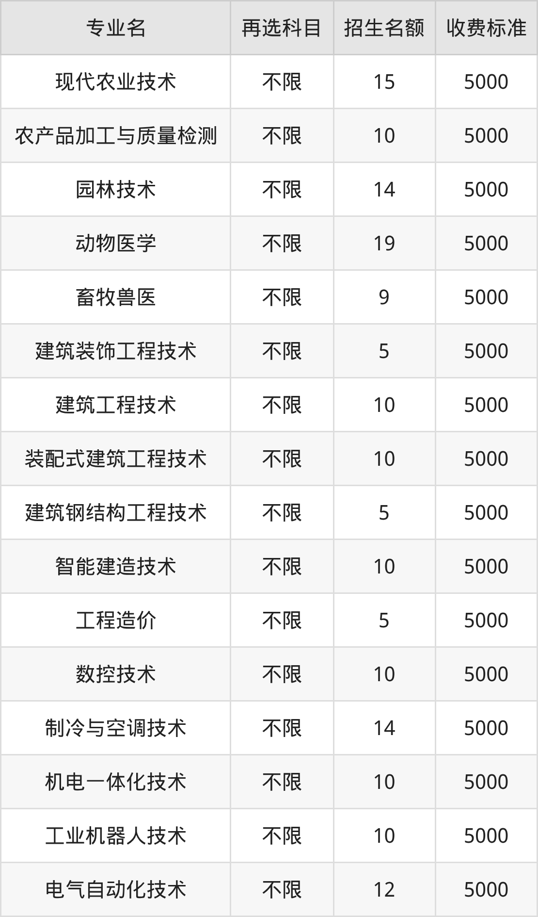 | 高职高专批 | 历史 | 现代农业技术 | 15 |