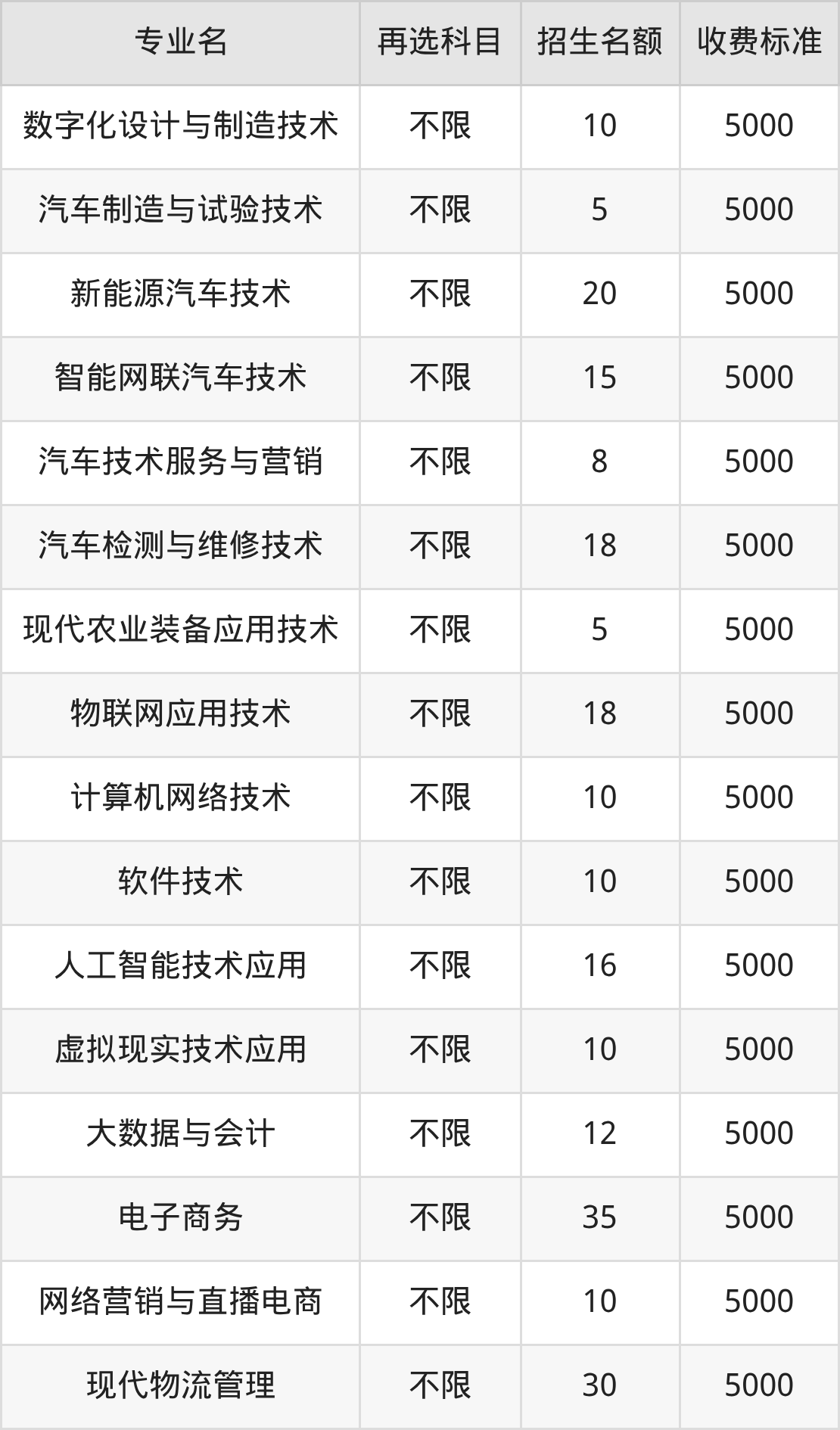 | 高职高专批 | 历史 | 智能网联汽车技术 | 15 |