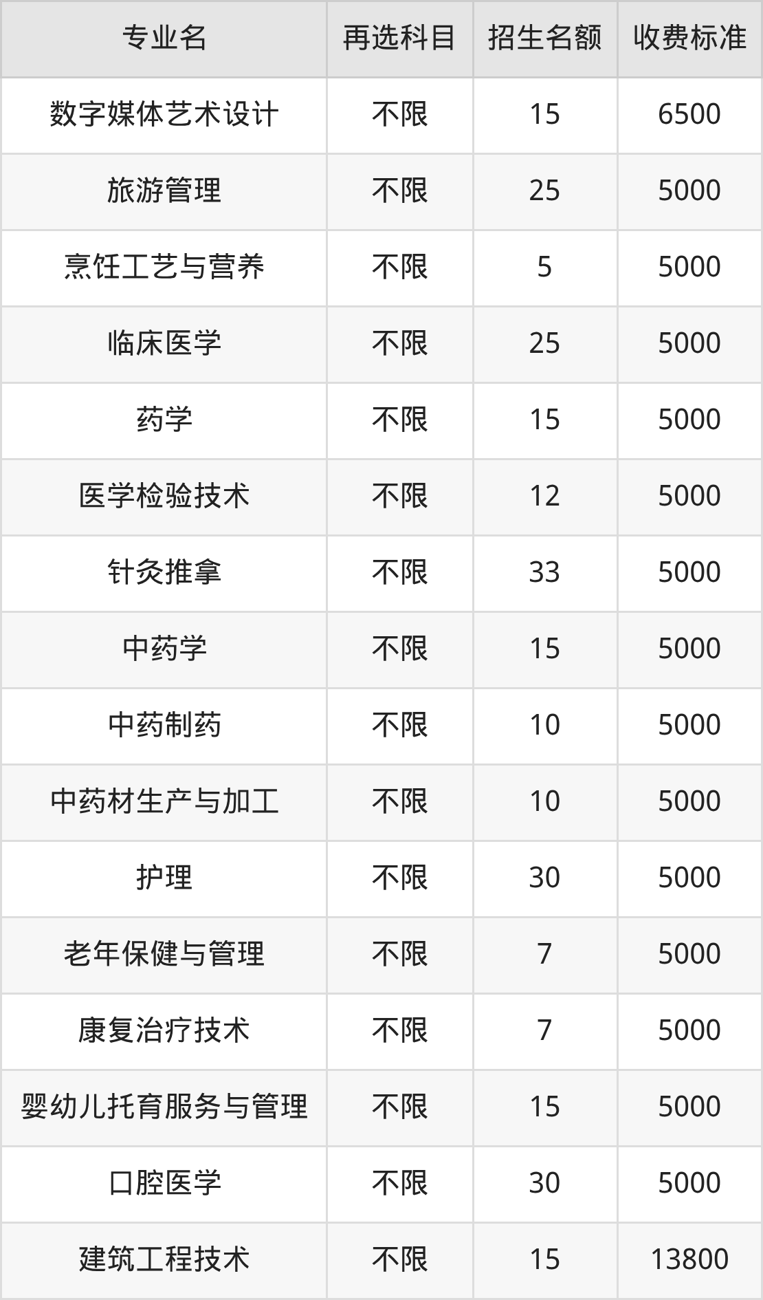 | 高职高专批 | 历史 | 中药学 | 15 |