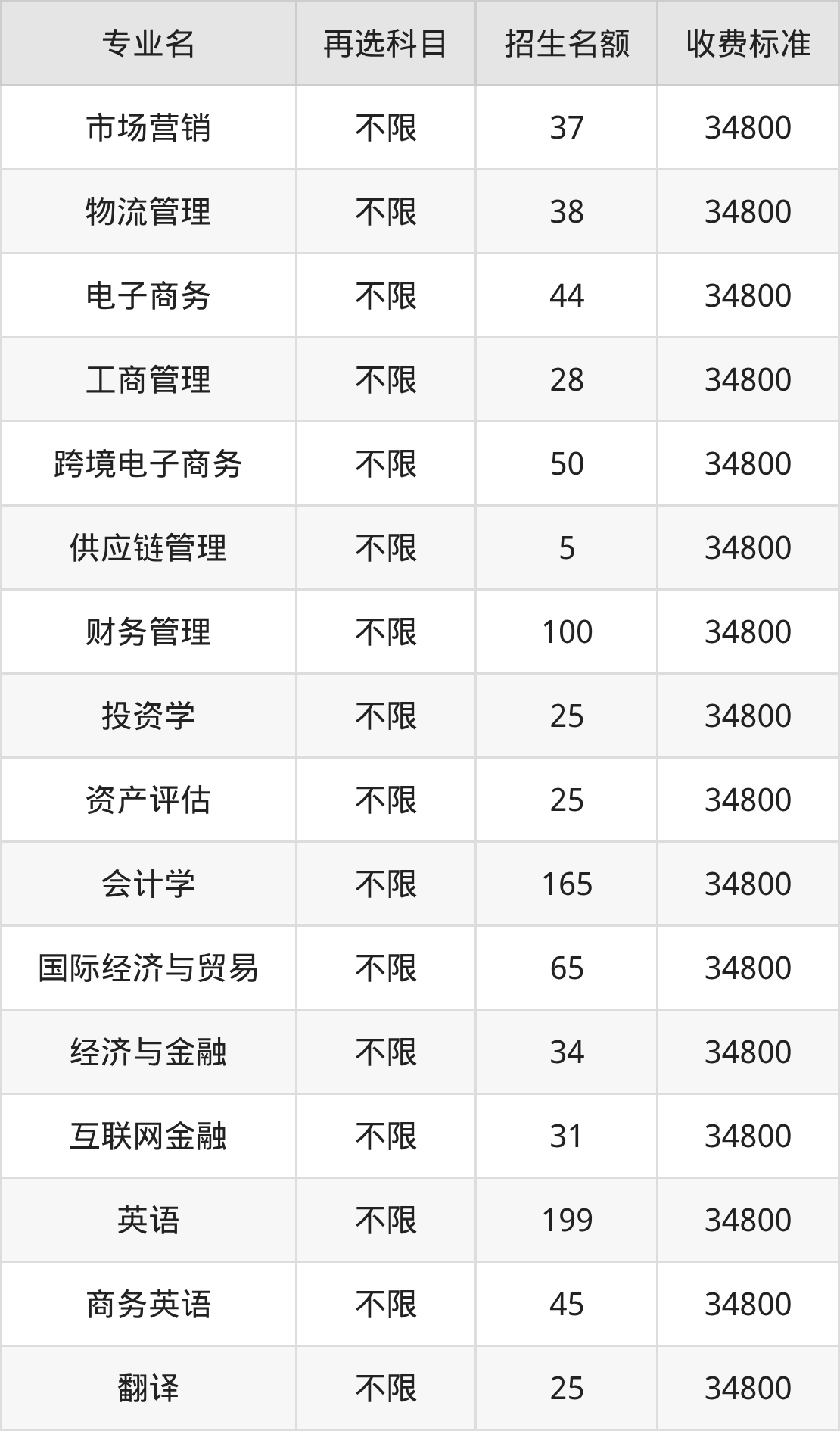 13.国际经济与贸易:学费是34800元