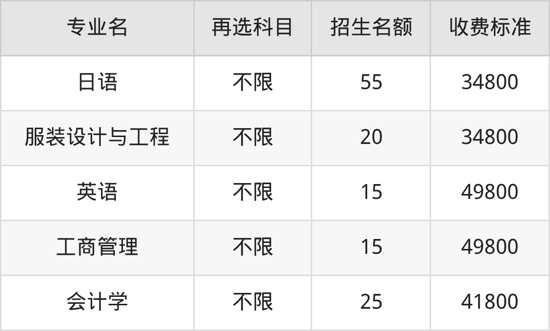 | 本科批 | 历史 | 服装设计与工程 | 20 |