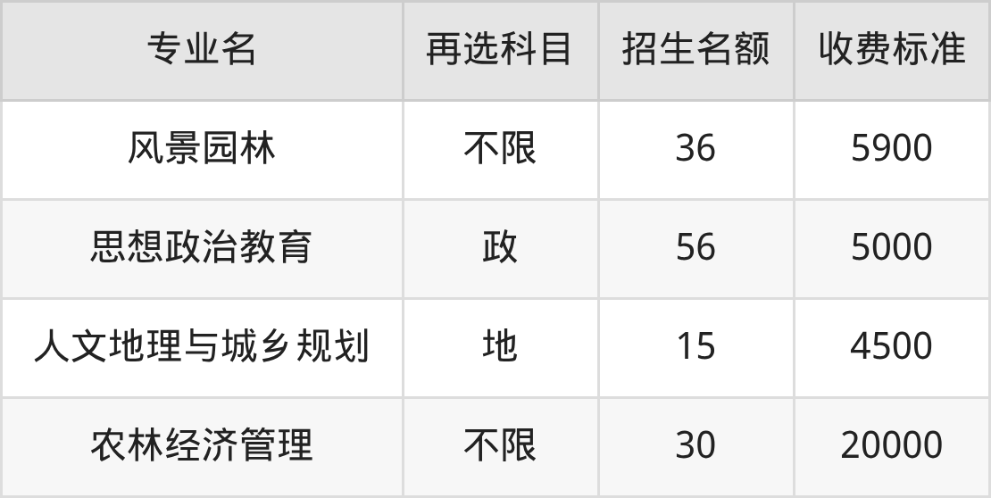 | 本科批 | 物理 | 农业资源与环境 | 30 |