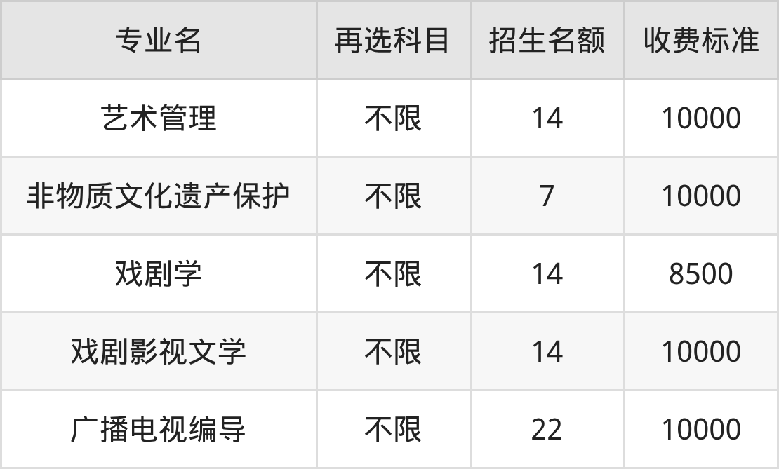 | 本科批B段 | 历史 | 戏剧学 | 14 |