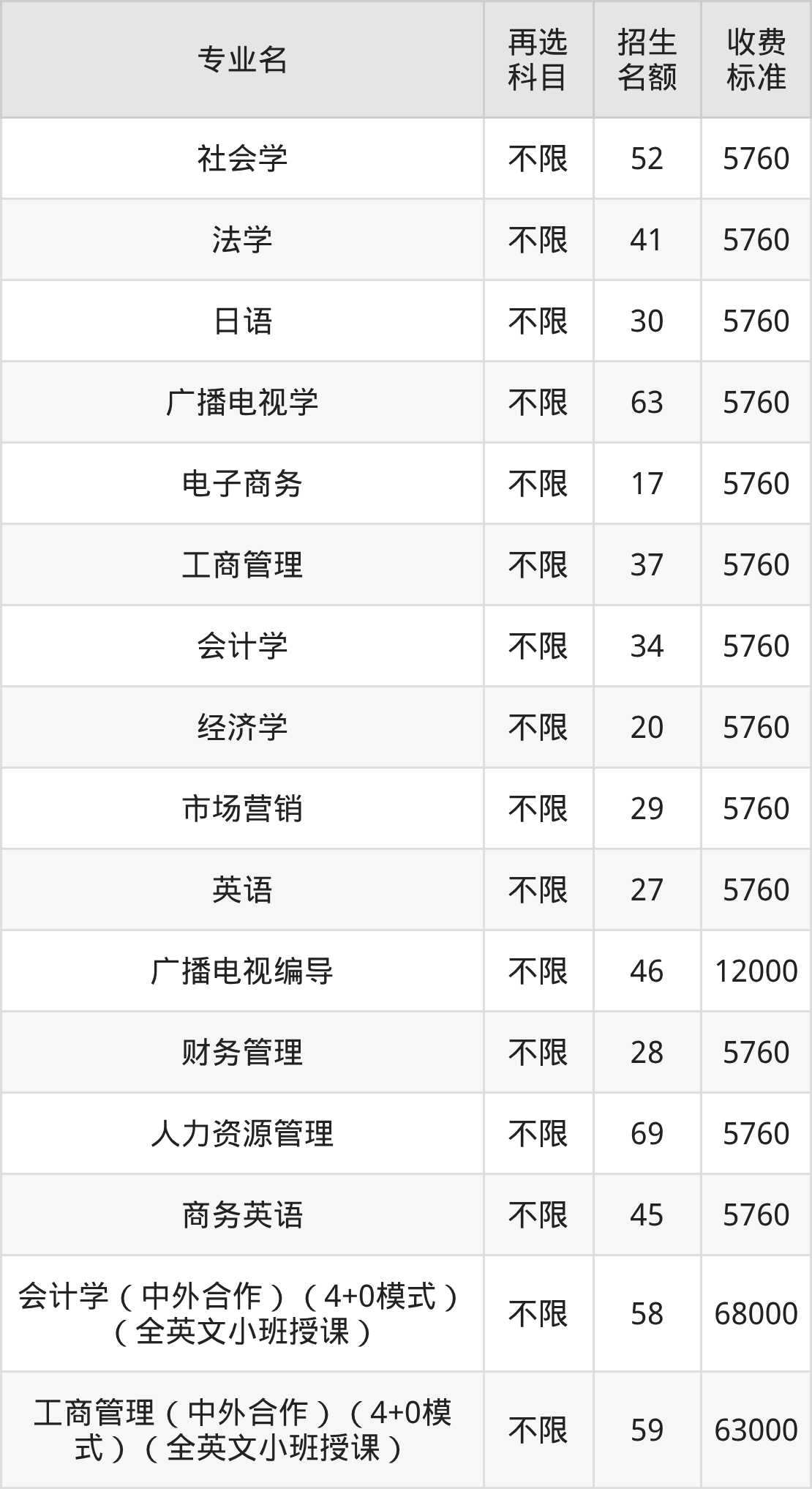 11.工商管理(中外合作)(4+0模式)(全英文小班授课):学费是63000元
