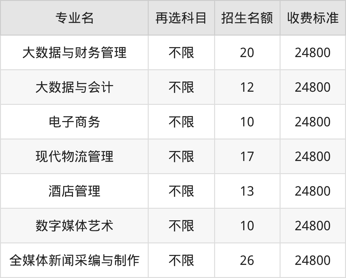 22.现代物流管理:学费是24800元