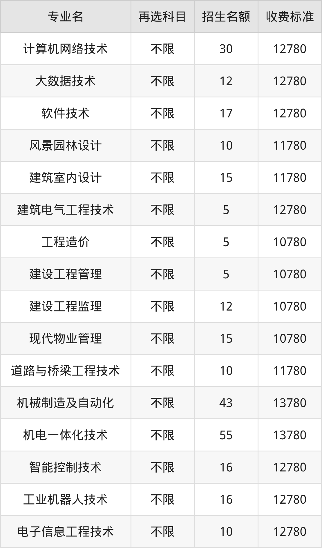 | 高职专科批 | 物理 | 机电一体化技术 | 115 |
