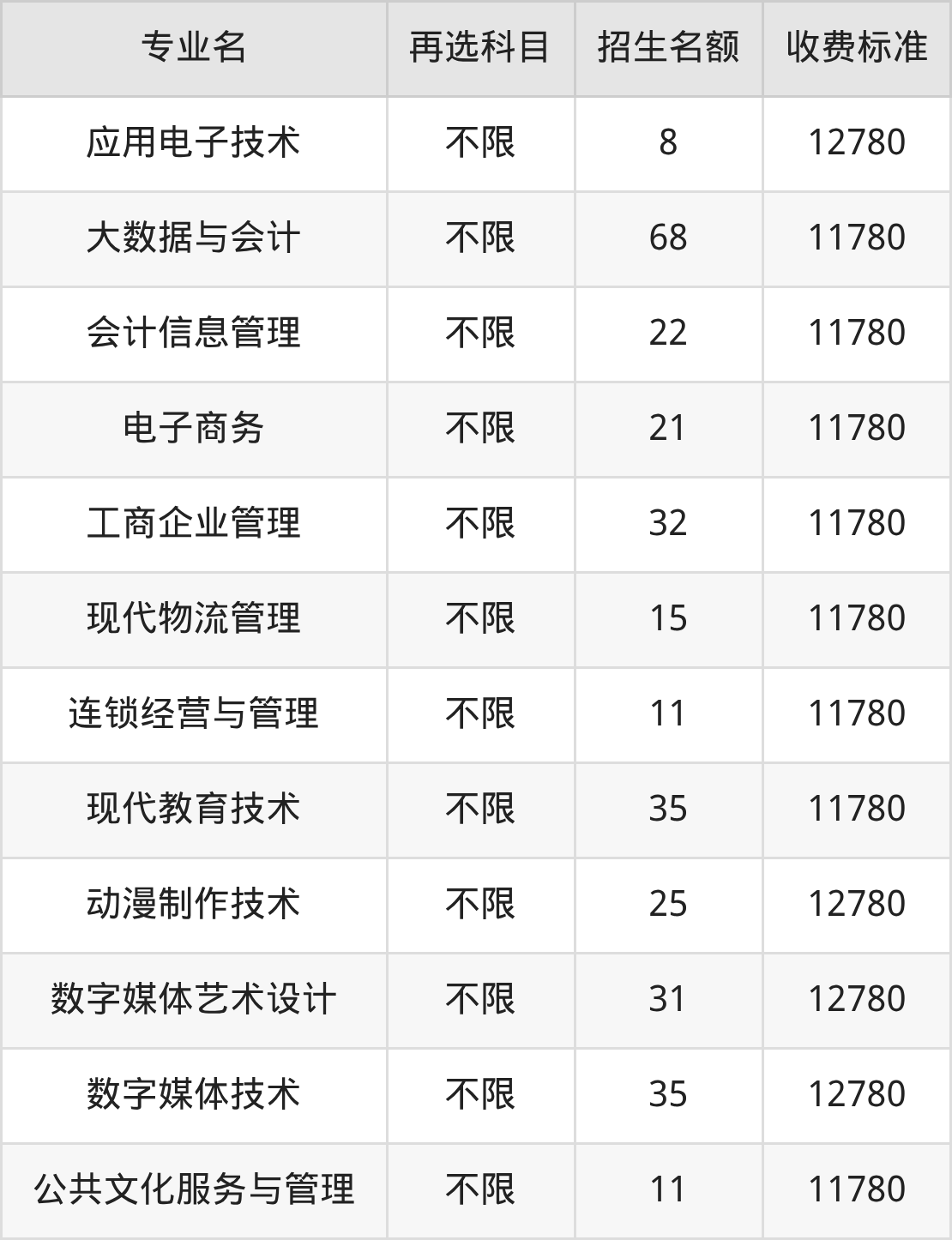 20.电子商务:学费是11780元