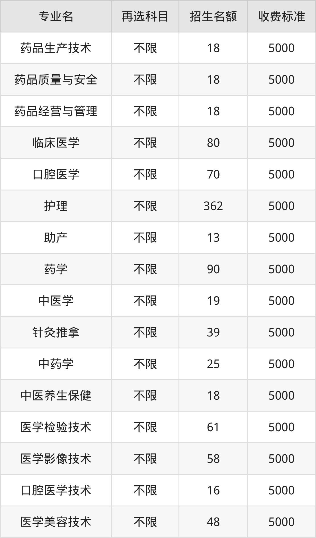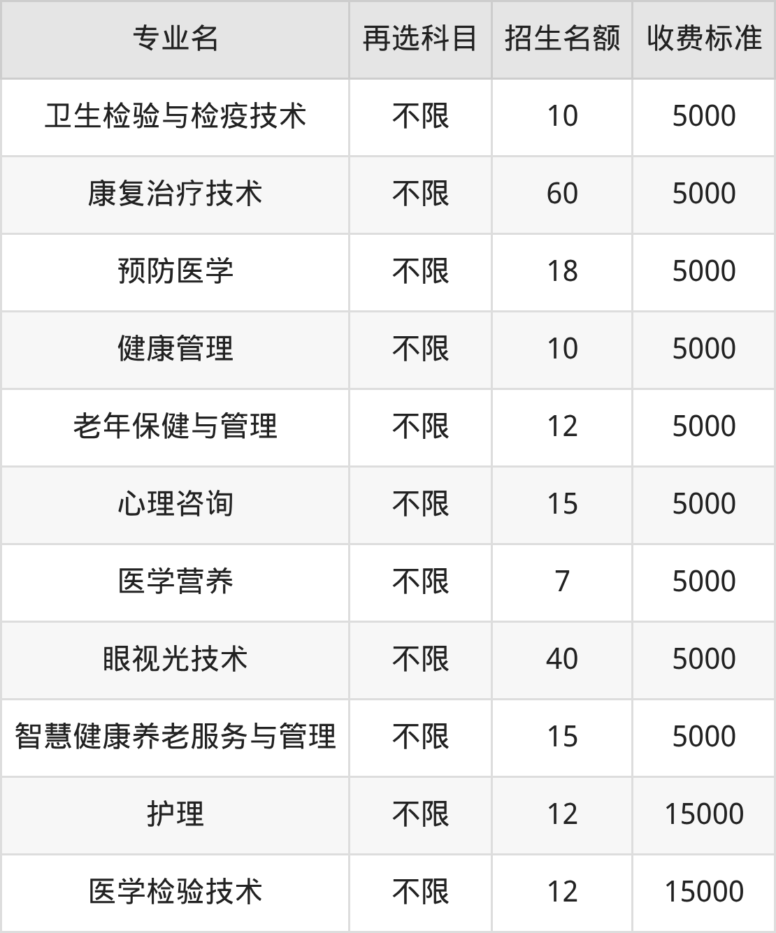 | 专科批 | 历史 | 卫生检验与检疫技术 | 10 |
