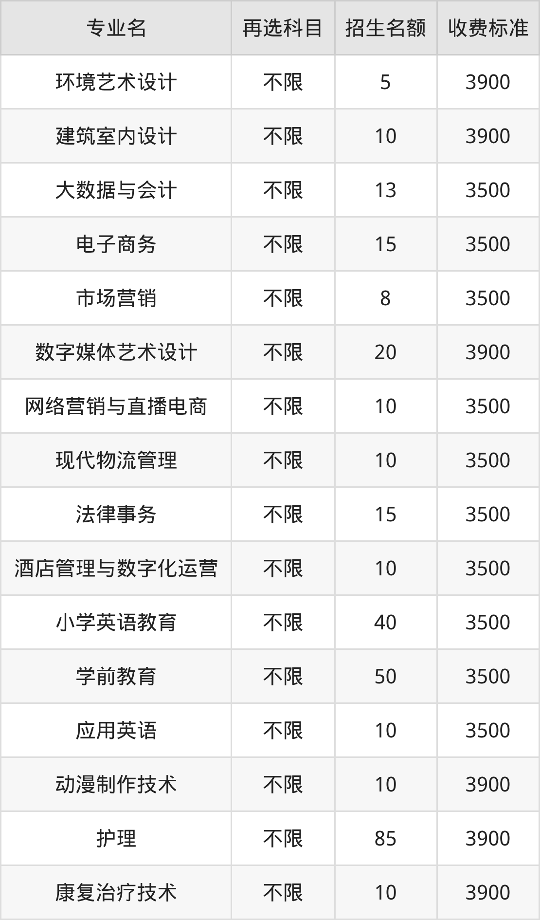 | 高职专科批 | 历史 | 动漫制作技术 | 10 |