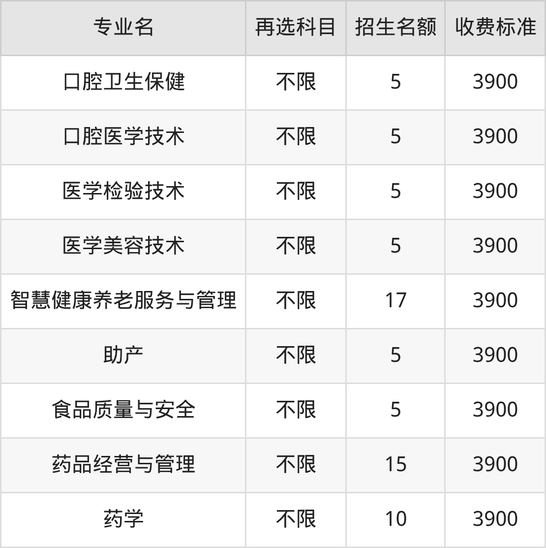 | 高职专科批 | 历史 | 药品经营与管理 | 15 |