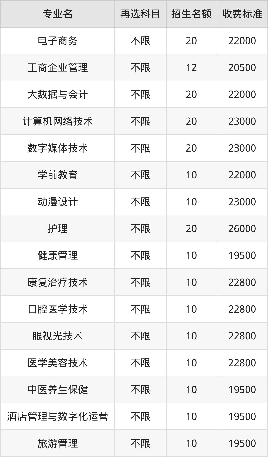 | 专科高职批 | 物理 | 工商企业管理 | 20 |