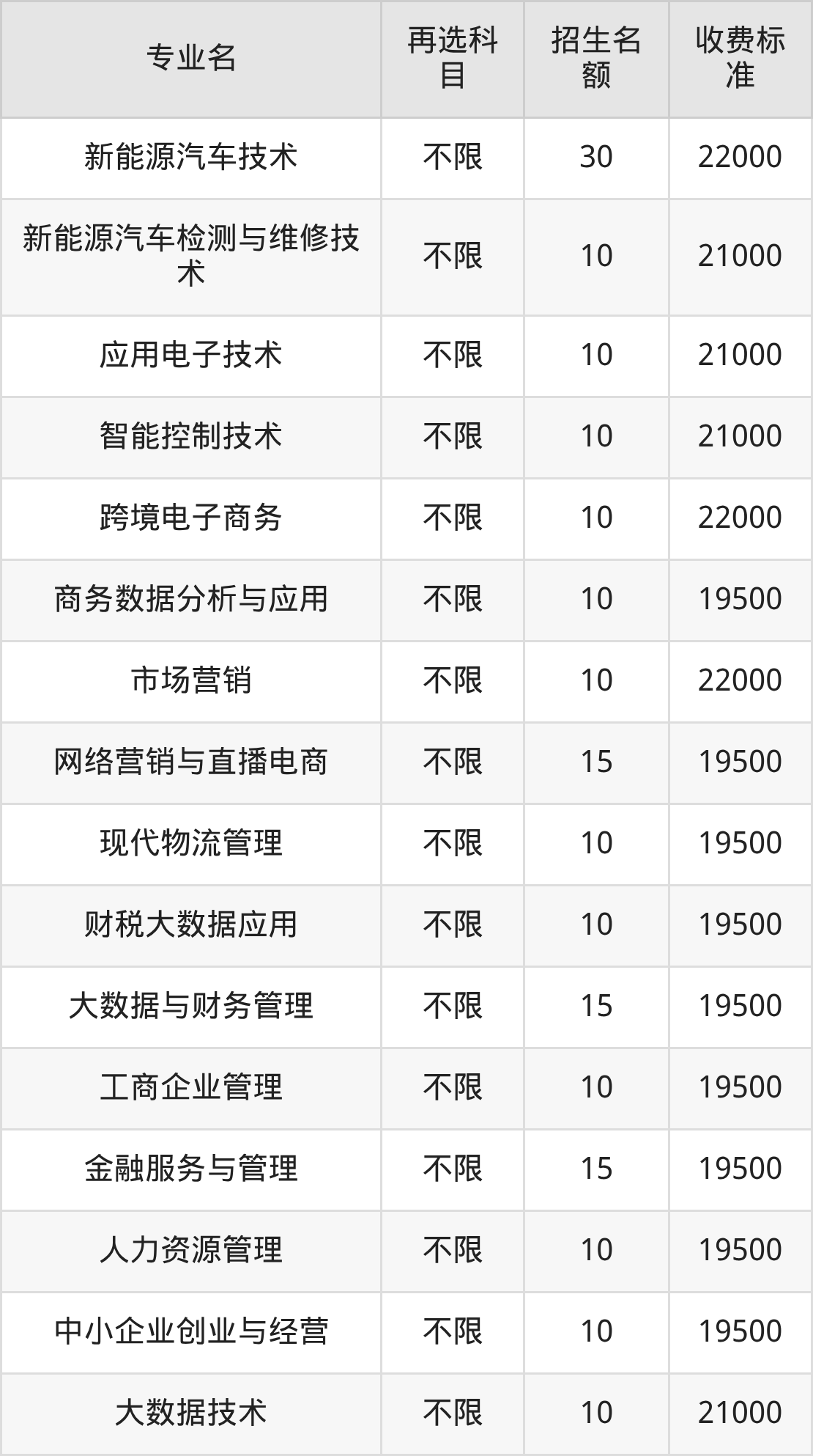 | 专科高职批 | 历史 | 新能源汽车技术 | 30 |