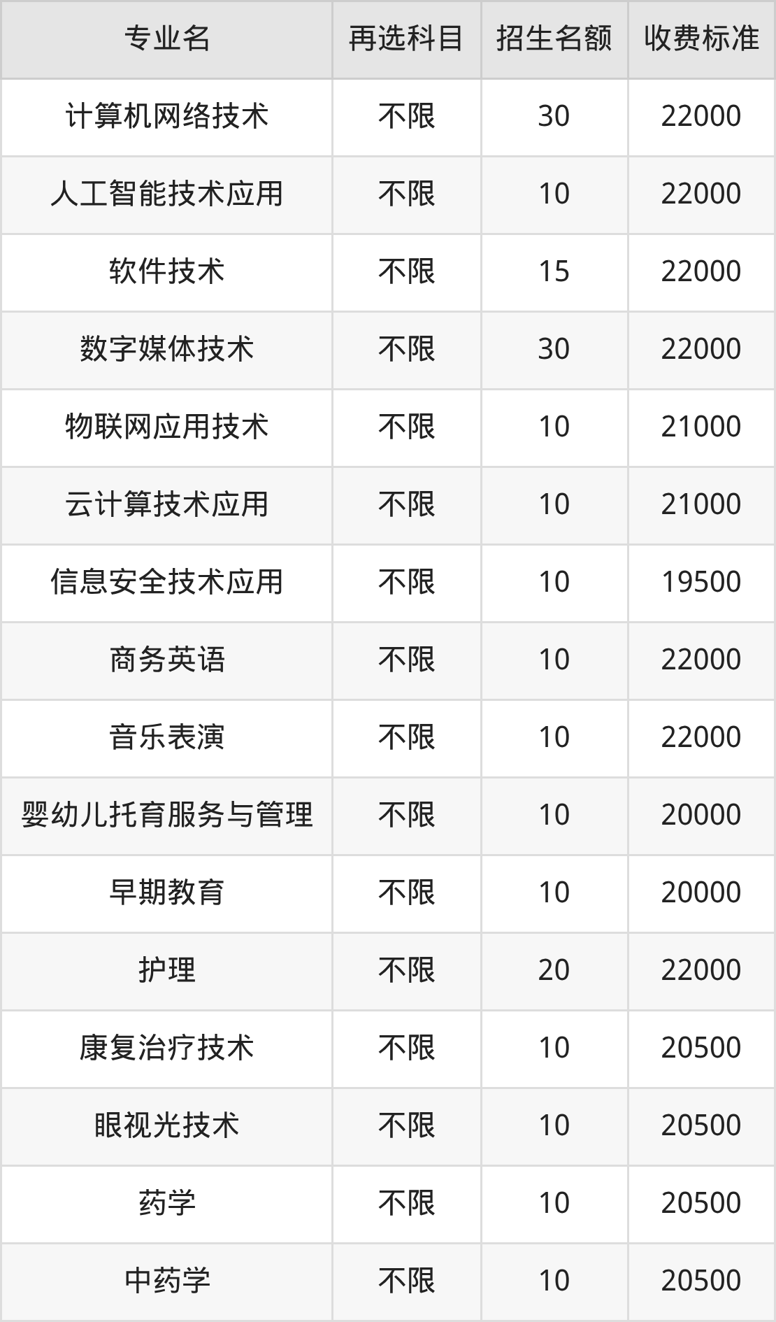 | 专科高职批 | 历史 | 信息安全技术应用 | 10 |