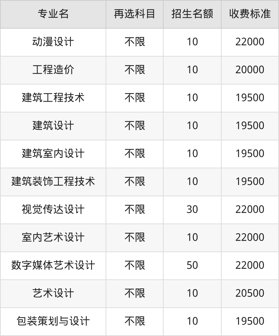 | 专科高职批 | 历史 | 建筑设计 | 10 |