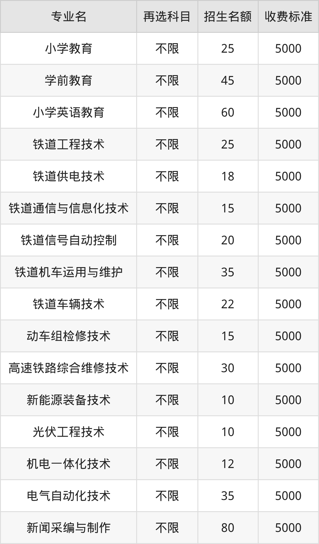 10.铁道车辆技术:学费是5000元