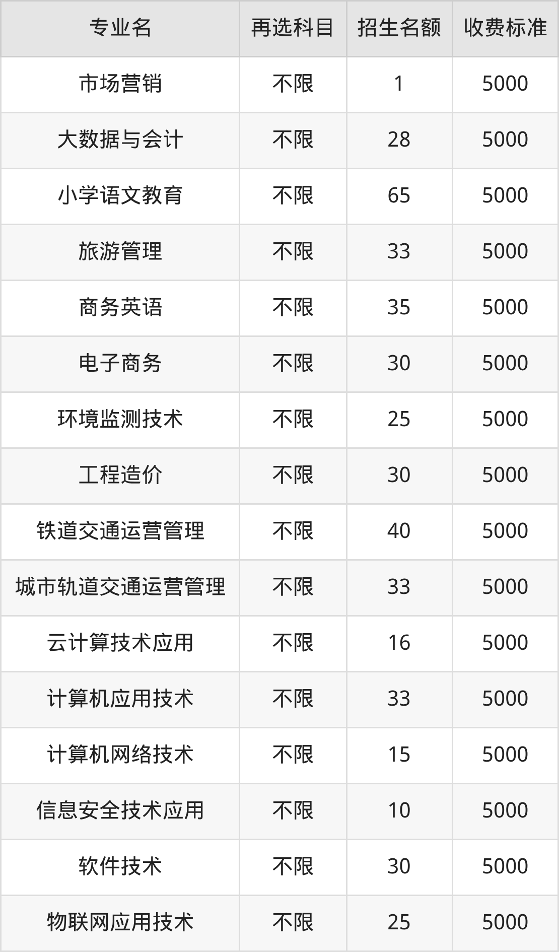 7.铁道通信与信息化技术:学费是5000元