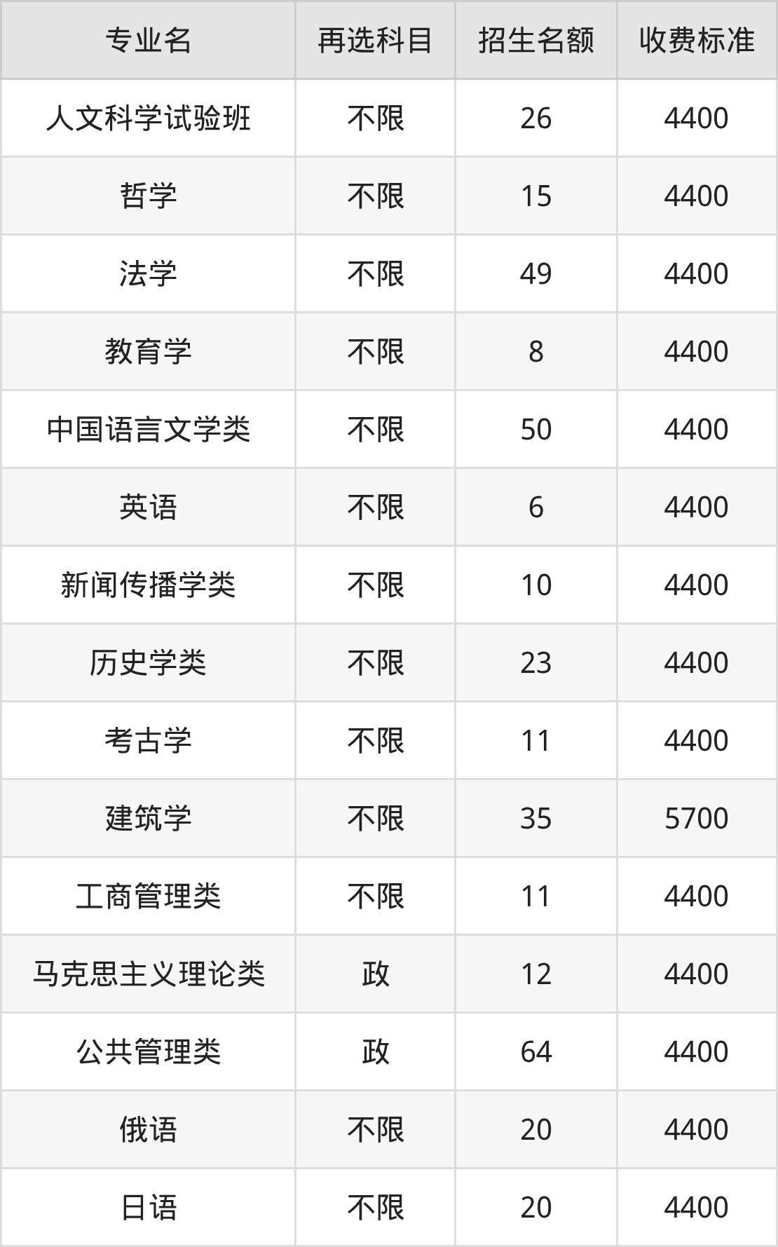 | 本科批 | 历史 | 人文科学试验班 | 26 |