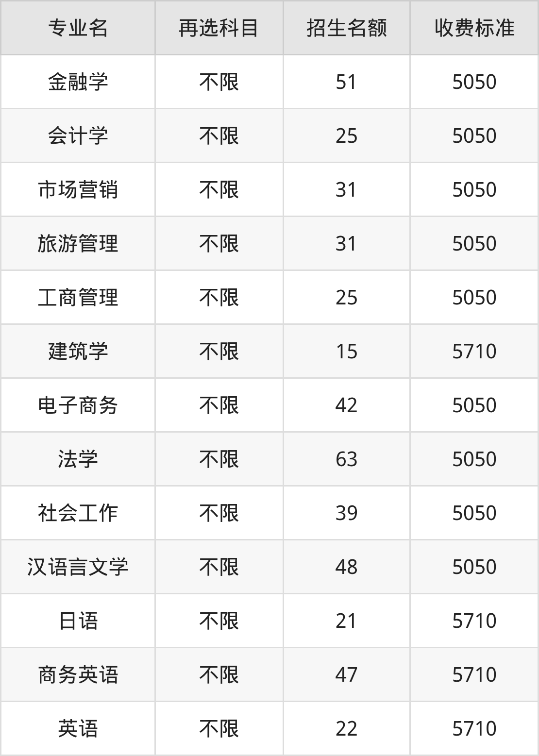 | 本科批 | 历史 | 金融学 | 51 |