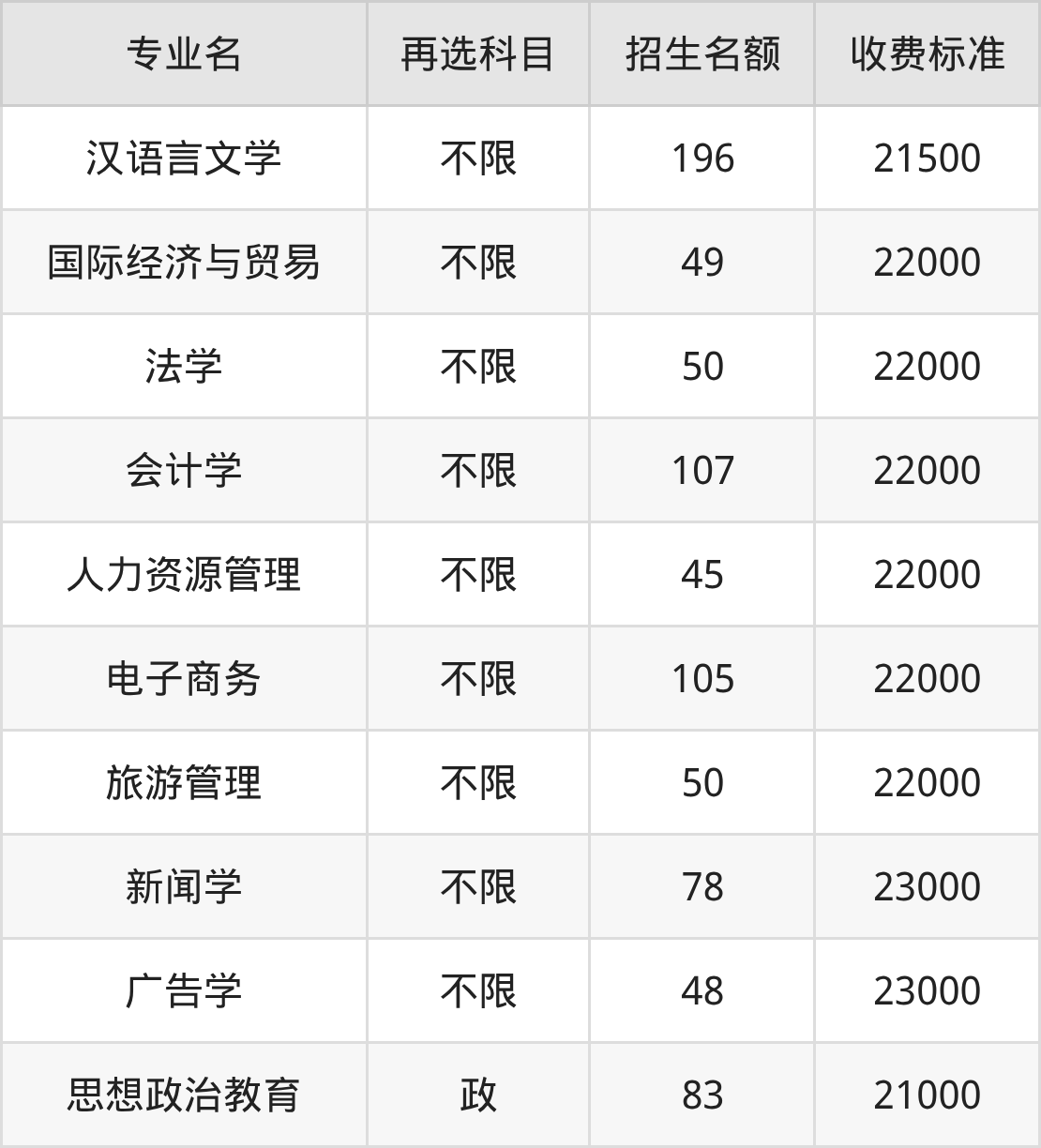 | 本科批 | 历史 | 广告学 | 48 |