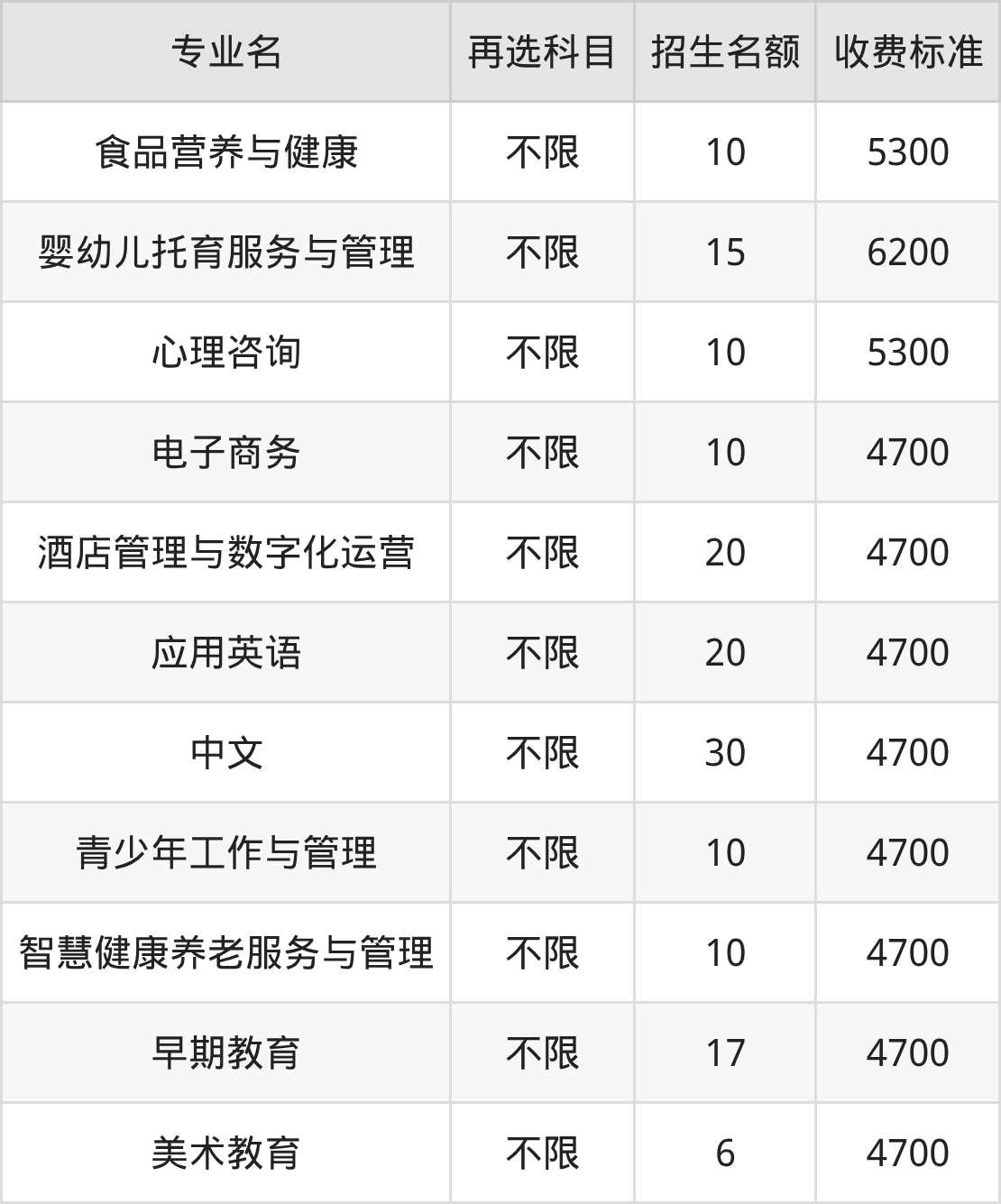 | 专科批 | 历史 | 婴幼儿托育服务与管理 | 15 |