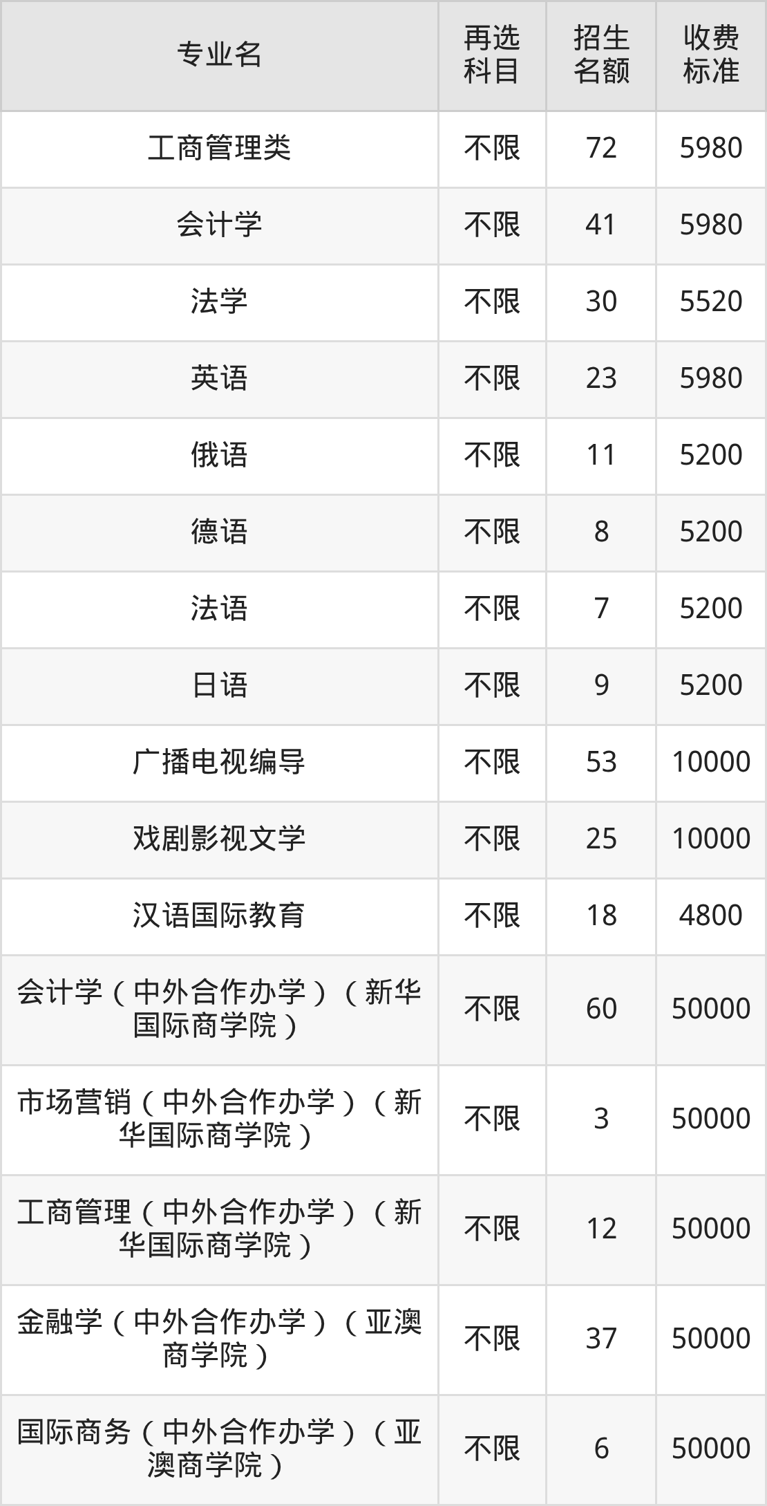 50.会计学(中外合作办学)(新华国际商学院):学费是50000元