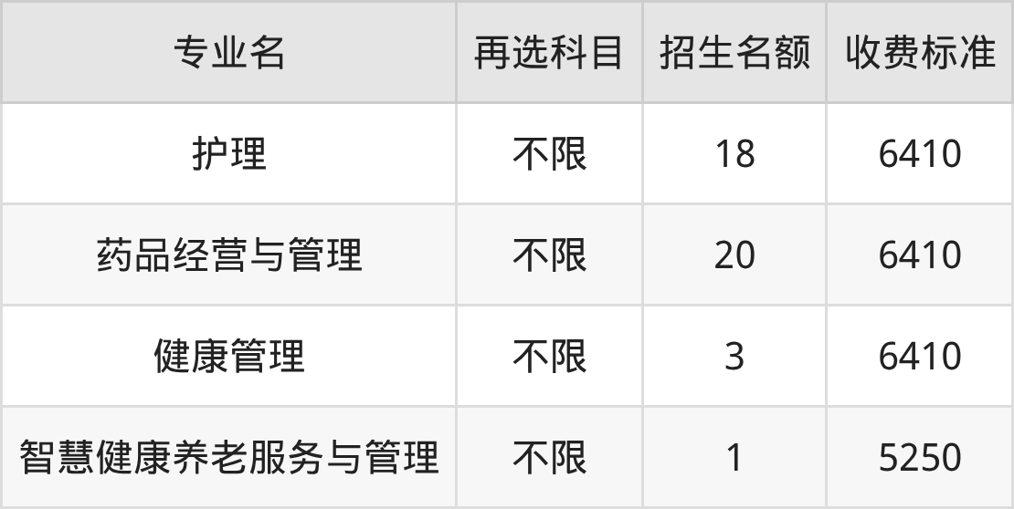 | 专科高职批 | 物理 | 健康管理 | 8 |