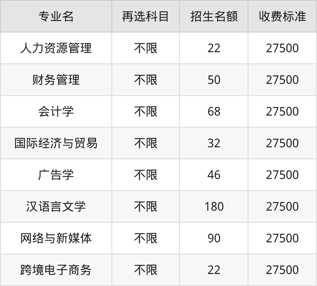 13.国际经济与贸易:学费是27500元