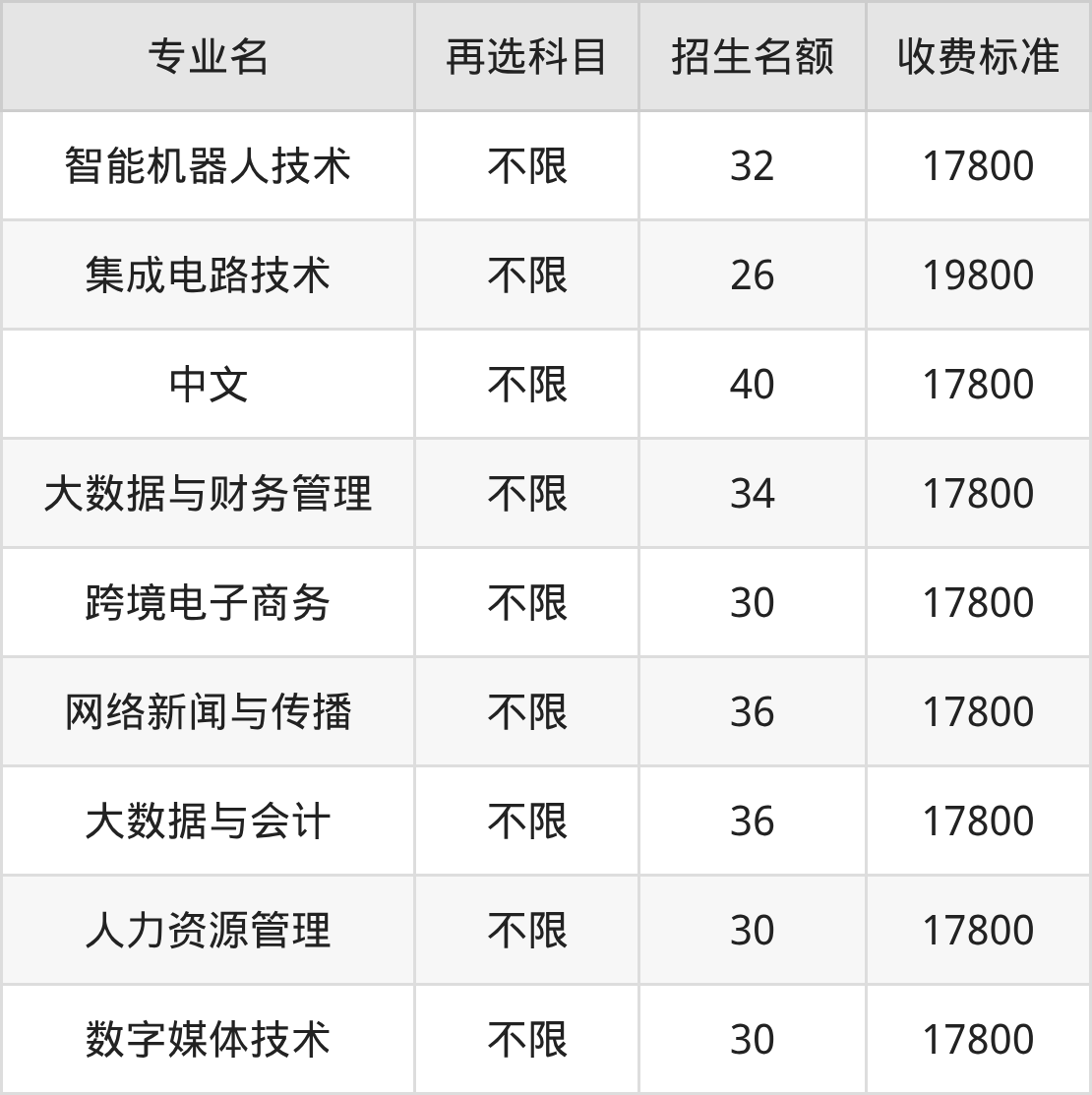 | 高职专科批 | 物理 | 大数据与财务管理 | 40 |