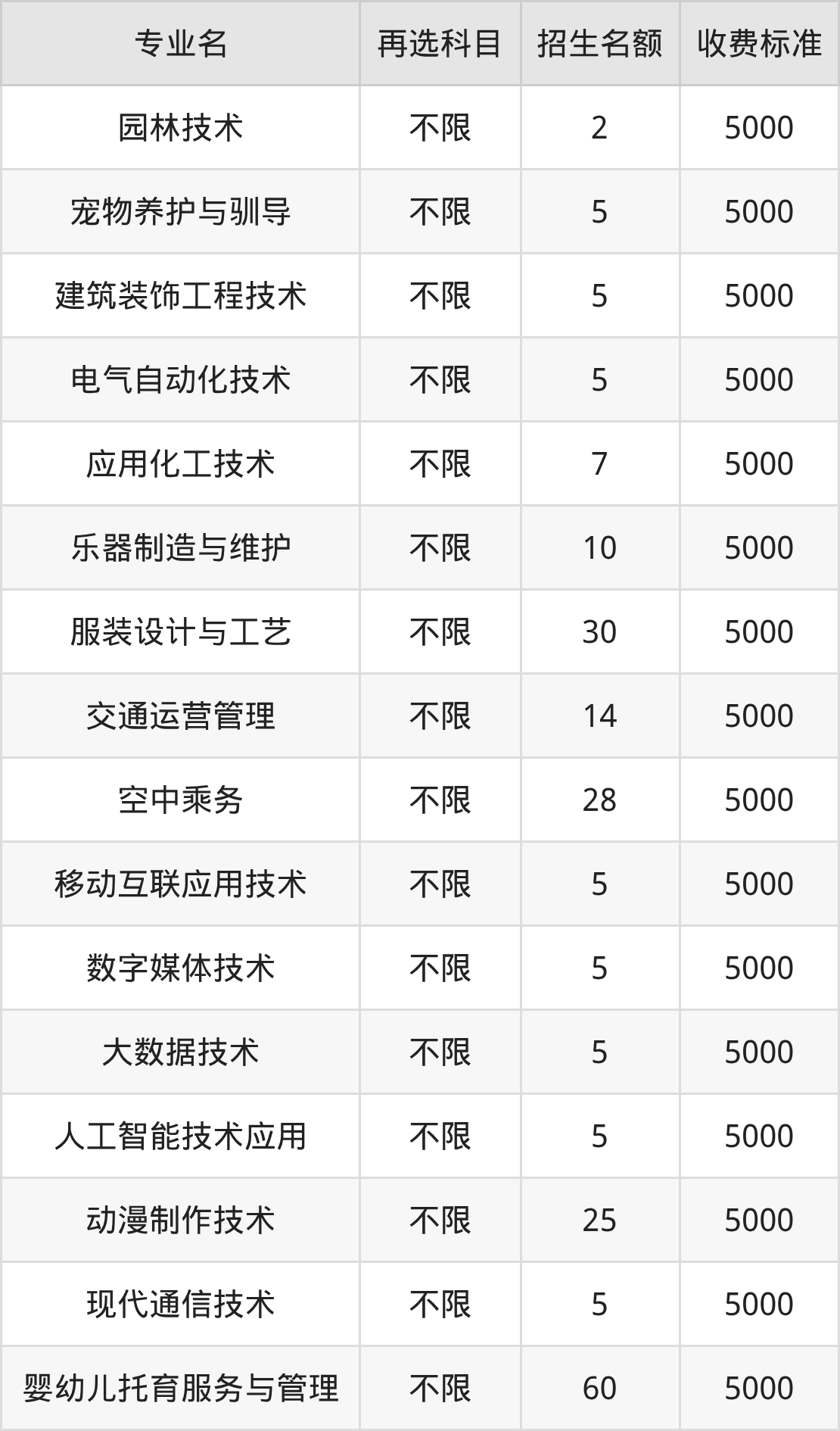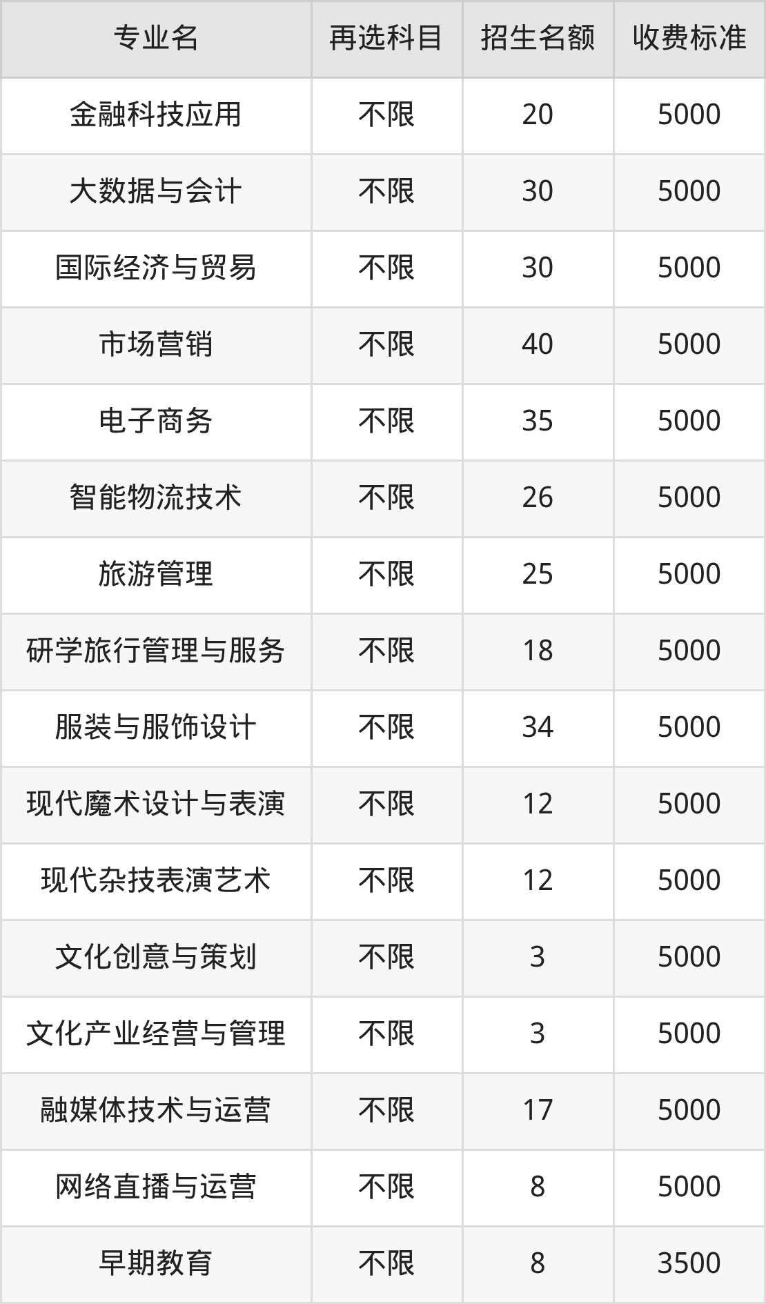 | 专科批 | 物理 | 艺术设计 | 10 |