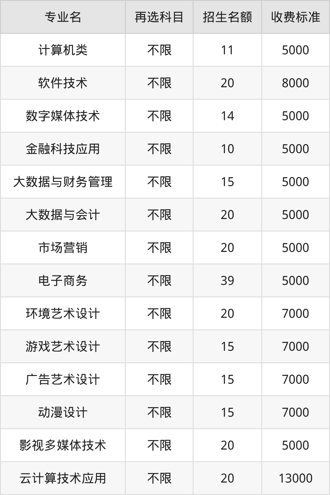 | 专科批 | 历史 | 数字媒体技术 | 14 |