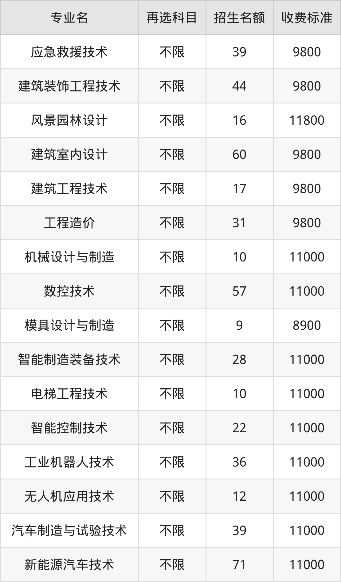 11.电梯工程技术:学费是11000元