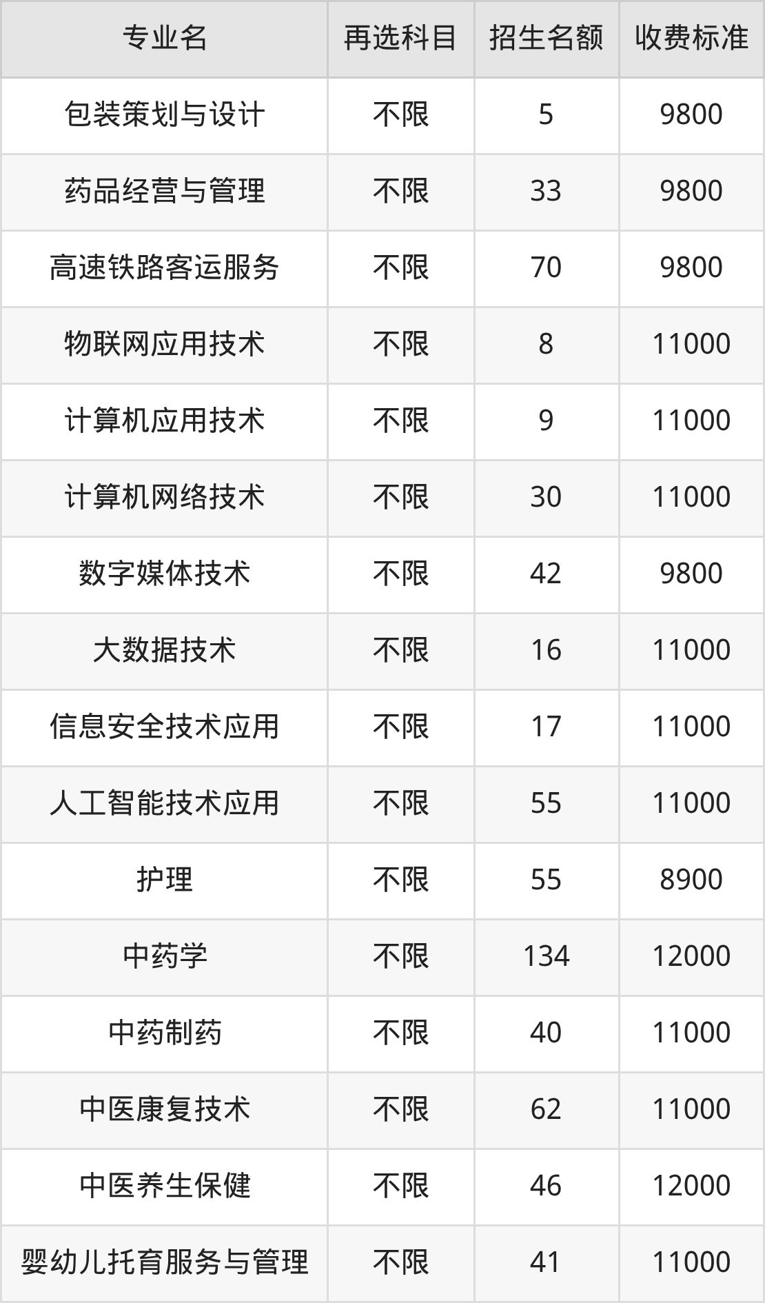 | 高职专科批 | 历史 | 中医养生保健 | 46 |