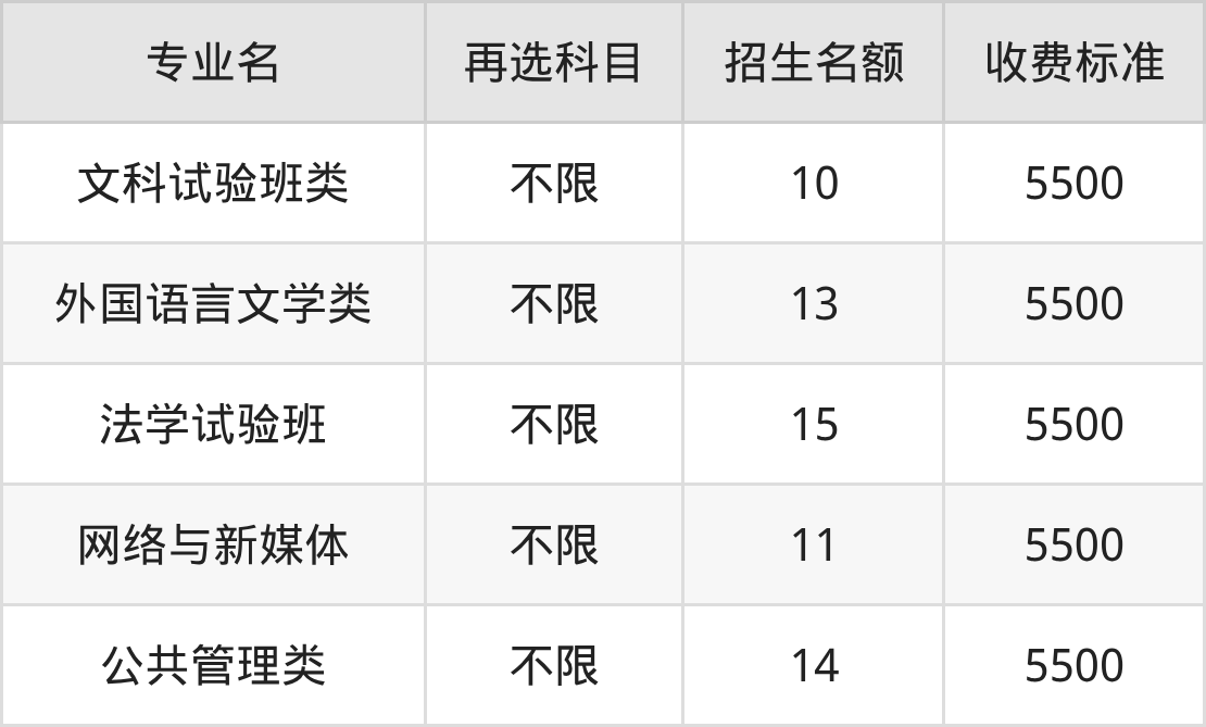 西安交通大学在历史组本科批招生的各个专业,每年的学费是5500元。招生人数最多的专业是法学试验班,2025年招15人,学费是5500元。