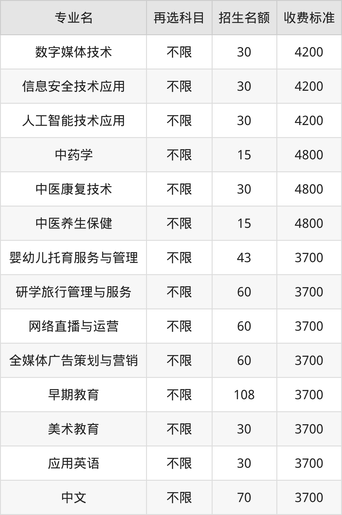 | 高职专科批 | 历史 | 中医养生保健 | 15 |