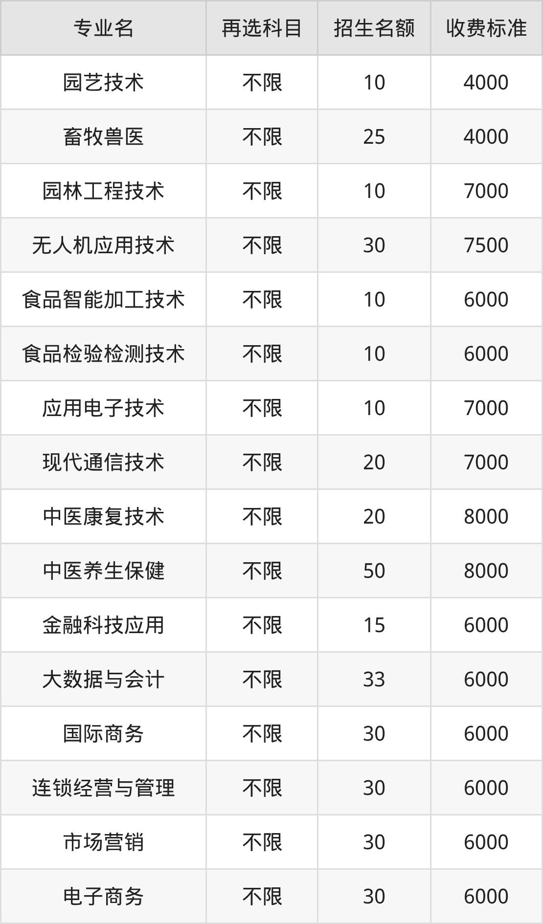 | 高职高专批 | 历史 | 园艺技术 | 10 |