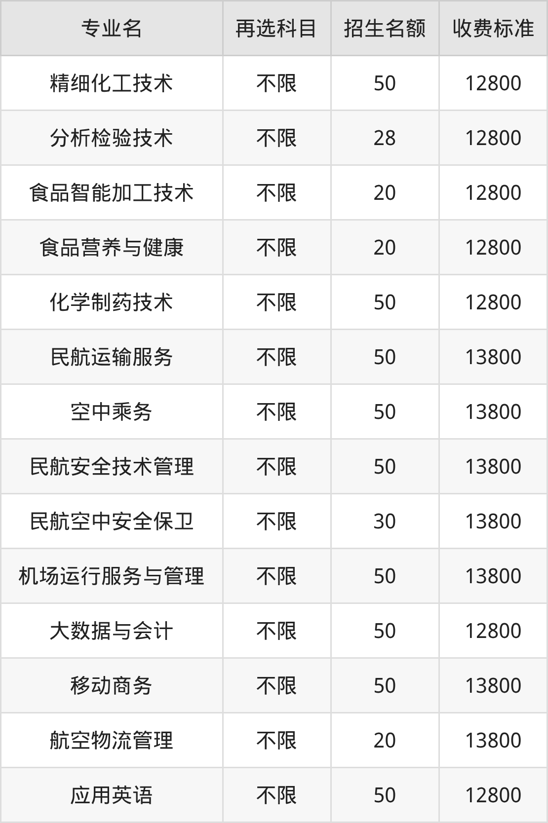 | 专科批 | 历史 | 民航运输服务 | 50 |