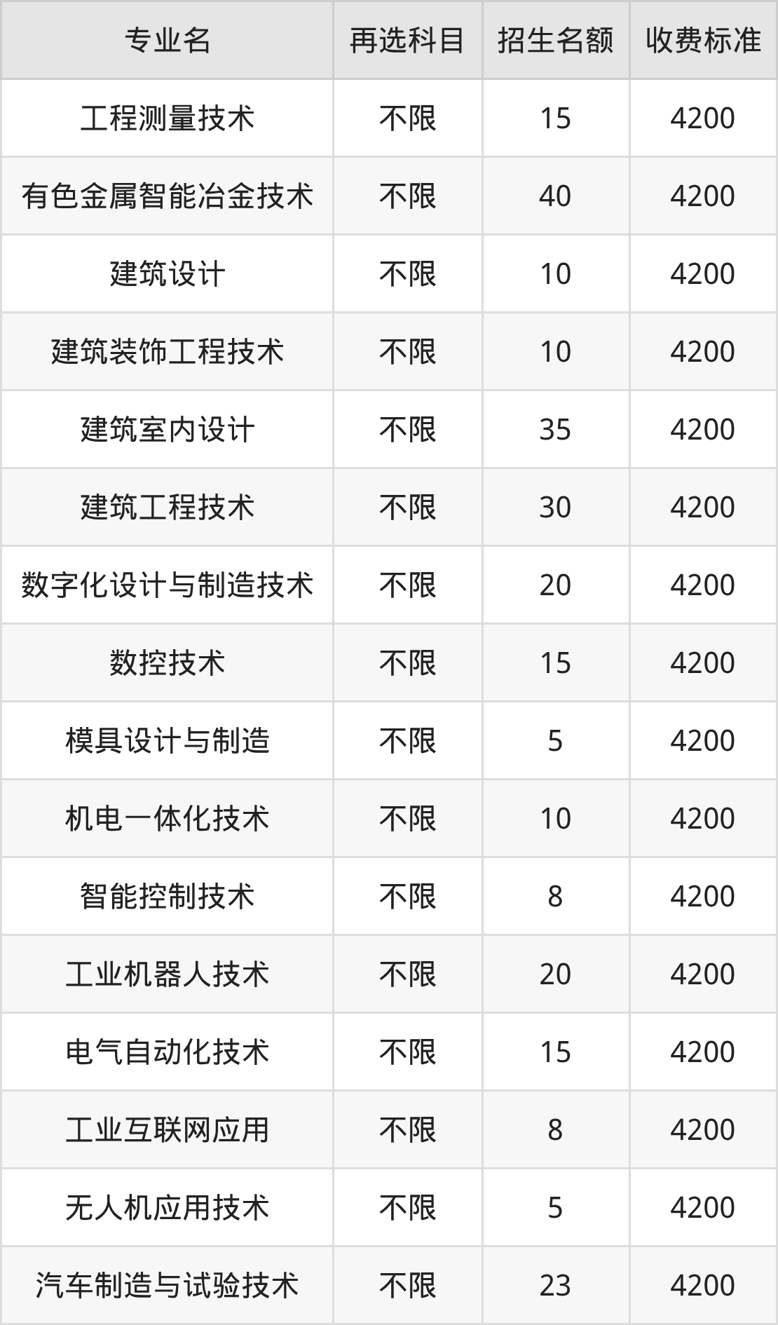 10.机电一体化技术:学费是4200元