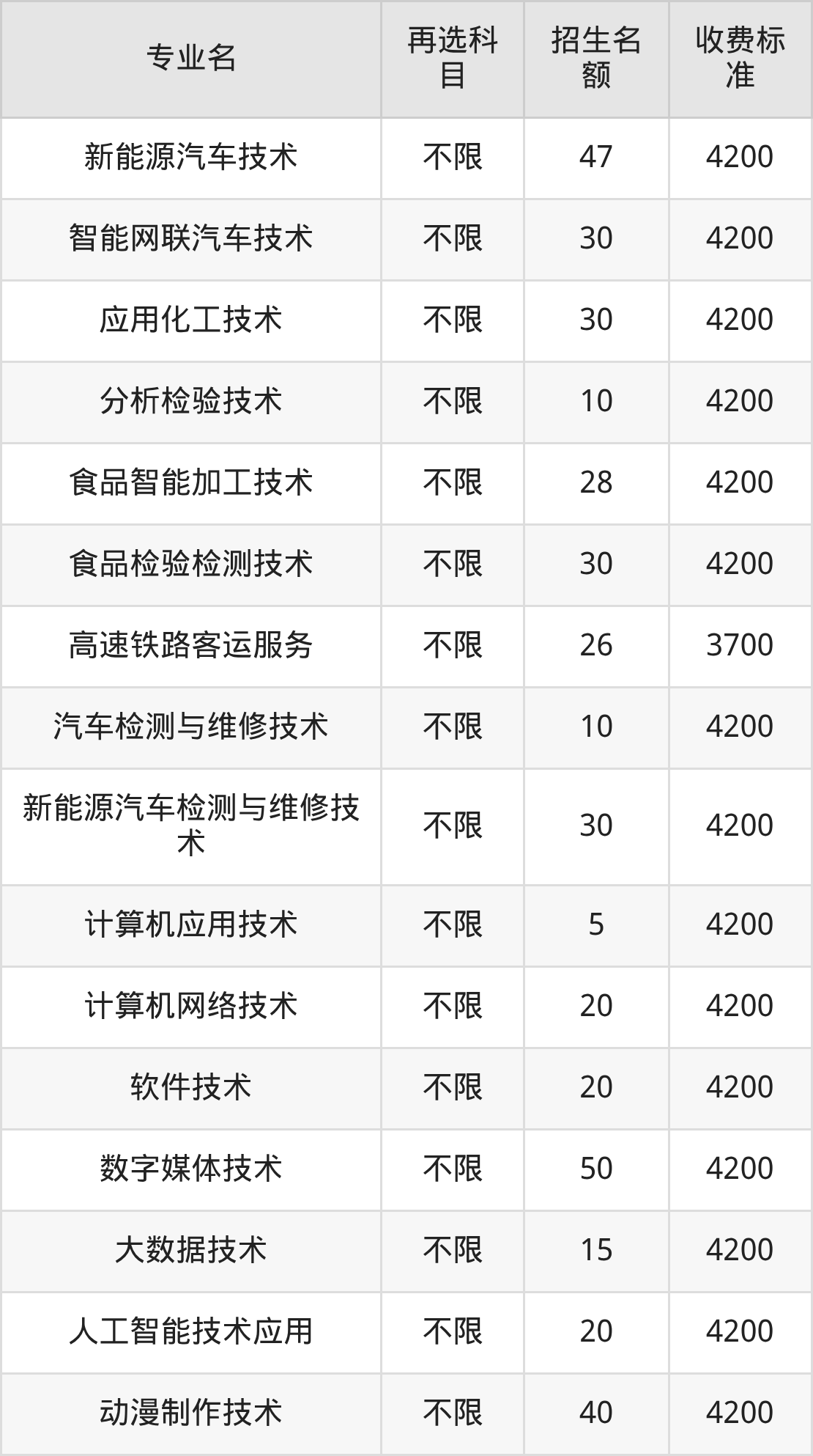 16.汽车制造与试验技术:学费是4200元