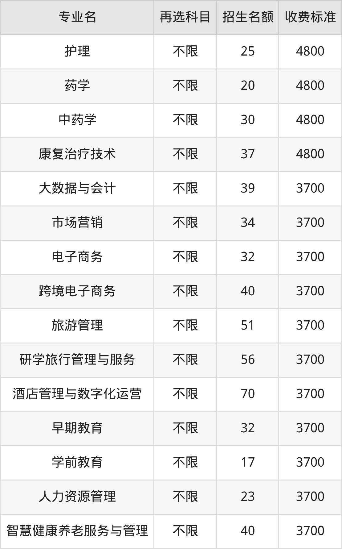 | 高职专科批 | 历史 | 智慧健康养老服务与管理 | 40 |