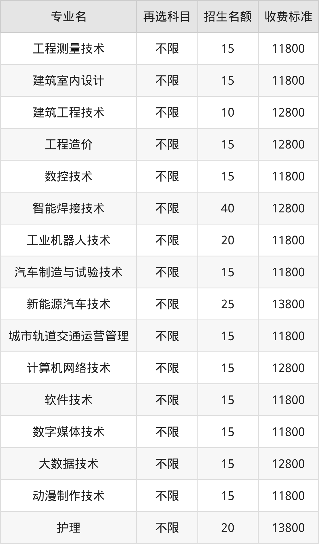 3.建筑工程技术:学费是12800元