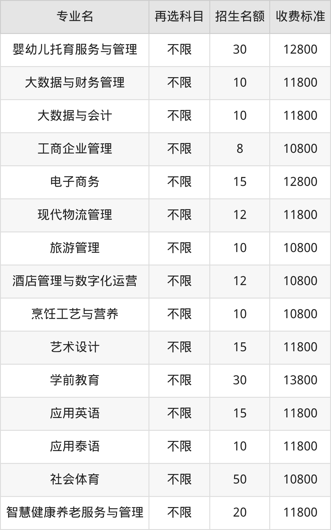 | 高职高专批 | 物理 | 酒店管理与数字化运营 | 13 |