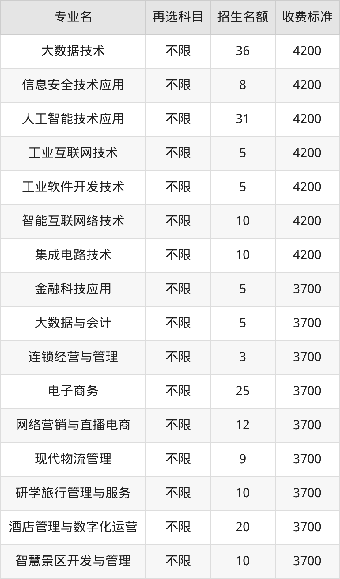 | 高职专科批 | 历史 | 计算机应用技术 | 20 |